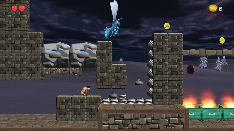 "Epic Dumpster Bear 1.5 DX" injects the play control and mechanics from "Epic Dumpster Bear 2" into remixed levels from the indie cult classic "Epic Dumpster Bear" creating a brand new epic adventure of 2D retro platformer goodness. The new blueberry powerup introduces speed as never seen before to help dumpster bear collect every level's speedrunning medal.